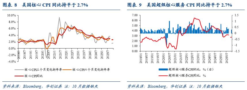 CPI小幅不及预期。CPI同比持平于2.7%,彭博预期2.7%;核心CPI同比持平于2.6%,彭博预期2.7%;超级核心服务CPI同比持平于2.7%。CPI环比0.3%,彭博预期0.3%;核心CPI环比0.2%,彭博预期0.3%。