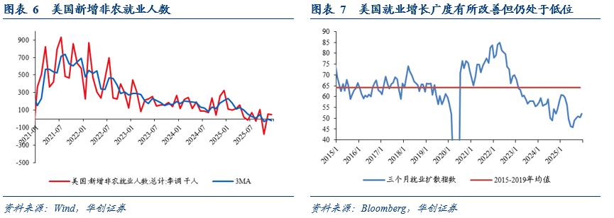 基于上述分析,10万/月左右的新增就业是观察美联储政策倾向的分水岭。移民收紧、政府裁员和 AI 的影响是结构性的,货币政策宽松能对冲的只能是周期性需求下滑带来的就业损失。目前的就业增长水平加上对冲“需求走弱”带来的修复,大约就是新增就业 10 万 / 月,这一水平也基本符合海外对“盈亏平衡就业增长(保持失业率稳定的就业增长)”的估算区间。对美联储而言,如果未来几个月新增就业继续保持在当下水平,意味着需要进一步前置降息支撑就业,不必过度担忧通胀(在油价低迷和核心商品通胀见顶背景下,通胀上行风险应该是经济的后验反馈,而不应是政策的前置限制);如果新增就业稳步向10万/月修复,美联储可以暂停降息、保持观察;如果新增就业快速修复并稳定在10万/月及以上,则美联储可能没有进一步降息的必要。