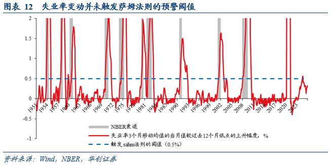失业率的3个月移动平均值较过去12个月低点高出0.33个百分点,低于萨姆法则的预警阈值(0.5个百分点)